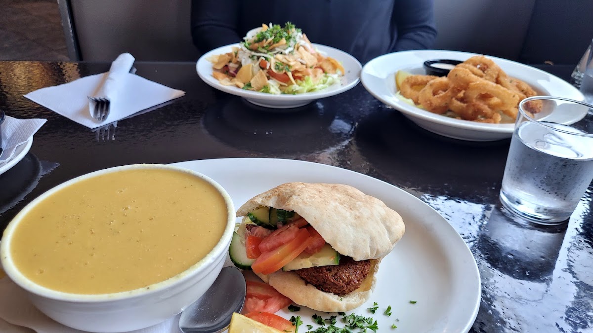 The menu reflects classic Mediterranean comfort food, with dishes that feel both hearty and balanced. One of the first things that stands out is the freshly served pita bread. Warm and soft, it pairs perfectly with many of the plates on the menu. During one visit, the Lentil Soup and Salad Combo proved to be a satisfying starter. The soup was rich and earthy, while the accompanying salad added freshness and texture, creating a simple but well-balanced combination.